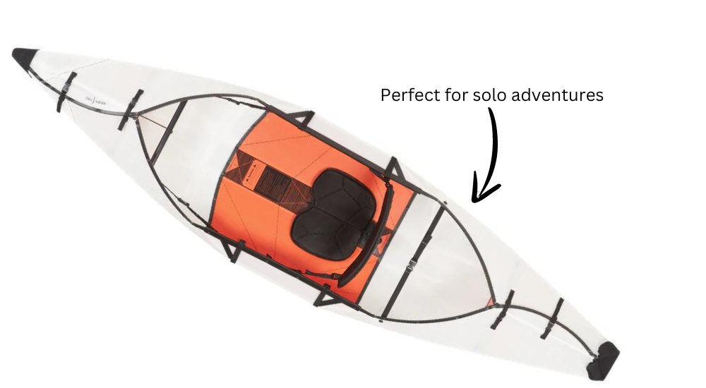 20-pound foldable kayak, packs down to 42″ x 10″ x 18″, perfect for solo adventurers and easy storage.